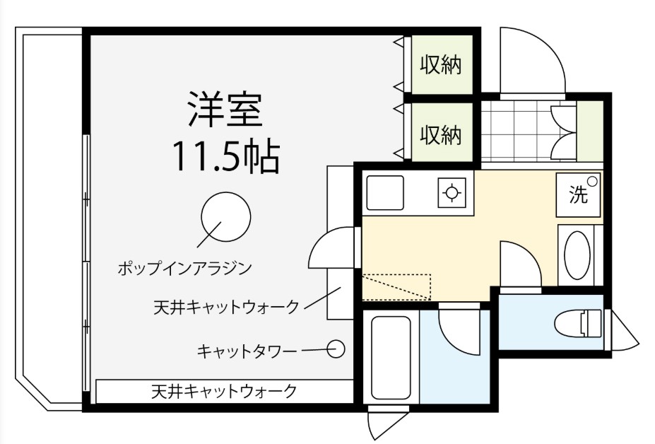 このお部屋のキャットウォークは、見た目の可愛さだけではなく、実用性が高い設備です。