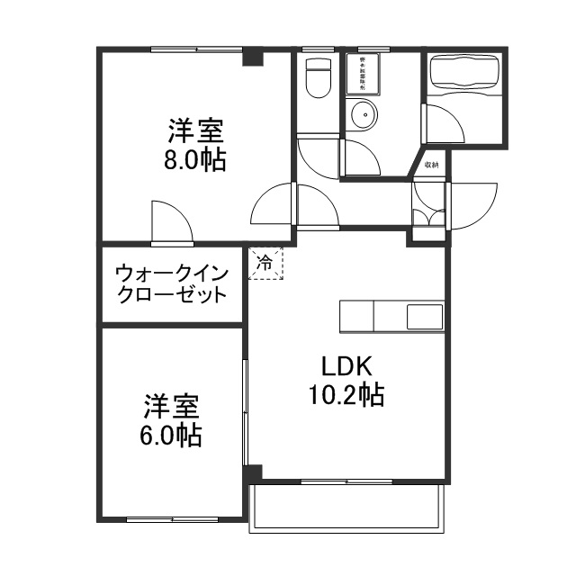 8.0帖と6.0帖の2つの洋室がありますが、どちらも柱の出っ張りが少なく、家具の配置がしやすい形状をしています。