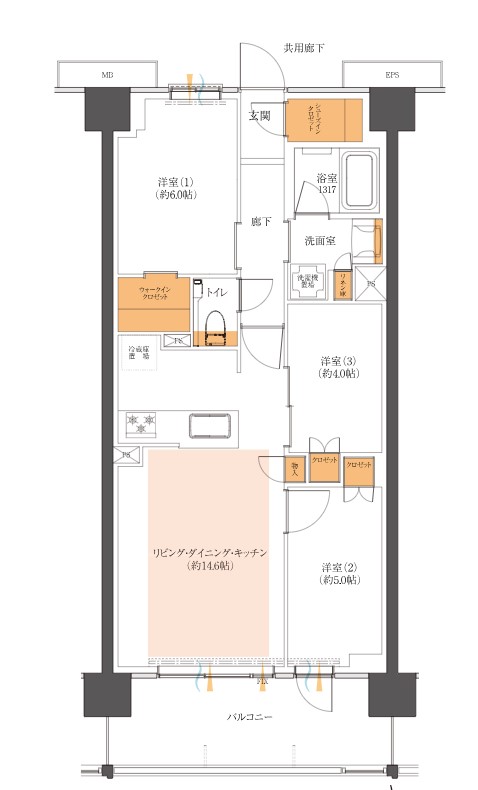 3LDK・66.69㎡のゆとりある空間で、家具の配置がしやすいのが特徴です。