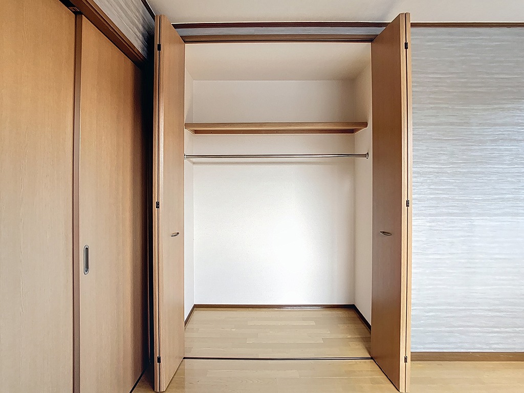 特筆すべきは、8帖と6帖の洋室それぞれに大きな収納(クローゼット)が計3箇所備わっている点です。お洋服が多い方や、趣味の道具をすっきりと片付けたい方にとって、この収納力は心強い味方になります。 さらに、2つの洋室はLDKや水回りを挟んで配置されているため、生活時間帯が異なる方同士の入居でも、お互いのプライバシーを守りながら快適に過ごせます