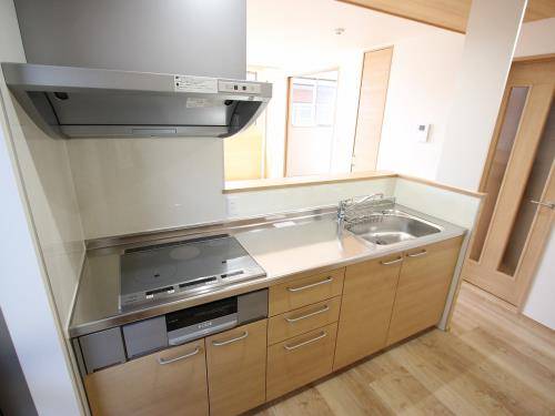 対面キッチン(2口コンロ・IH) :LDKを眺めながら料理ができる対面式です。IHクッキングヒーターはお手入れが楽で火事の心配も少なく、夏場もキッチンが暑くなりにくいのがメリットです 。