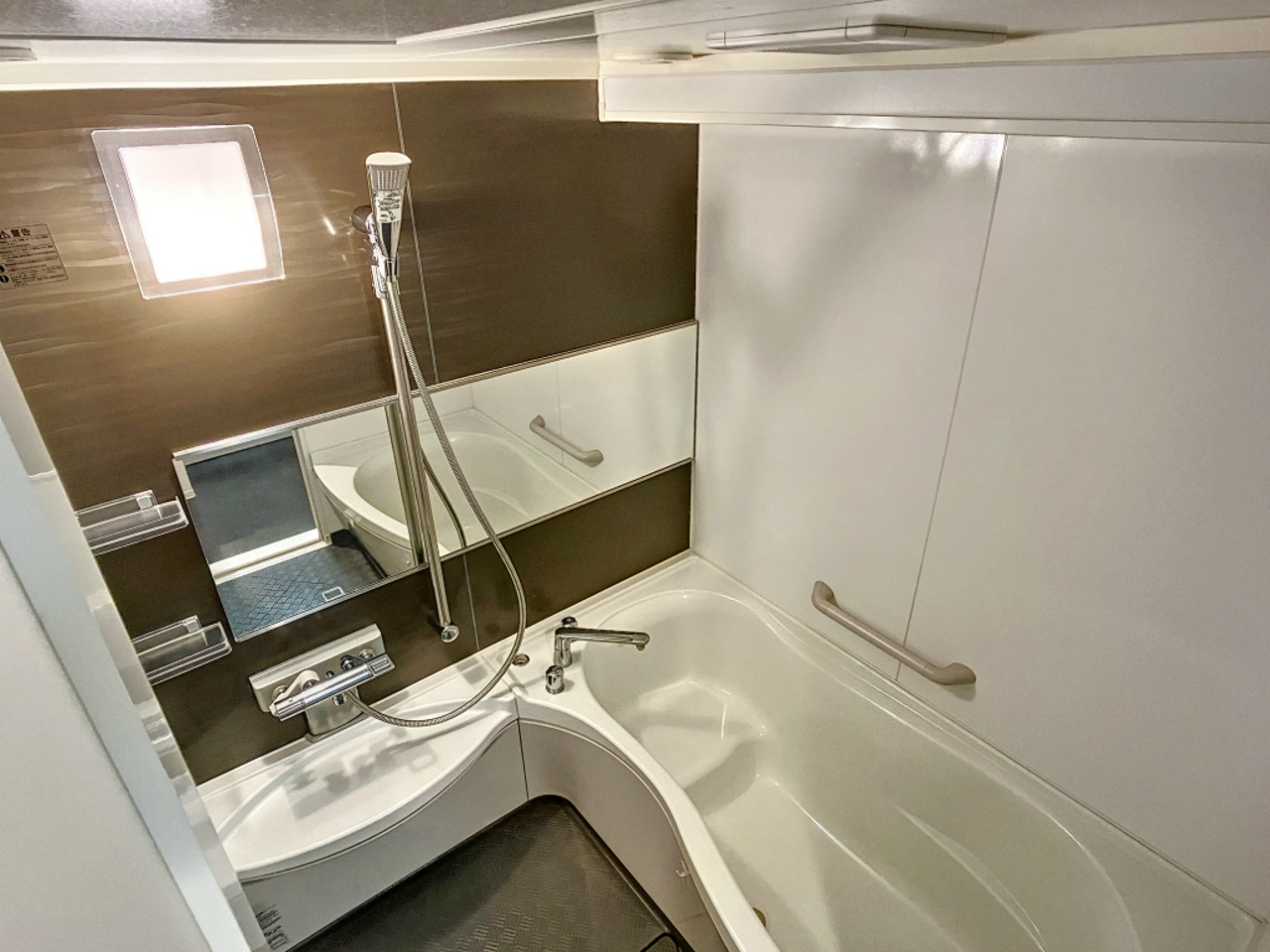 本物件の大きな特徴の一つが、一坪タイプのゆとりある浴室です。追い焚き機能を備え、時間に縛られず快適なバスタイムを実現。さらにミュージックシャワーを搭載しており、好きな音楽に包まれながら過ごす時間は、日々の疲れを癒やす特別なひとときになります。