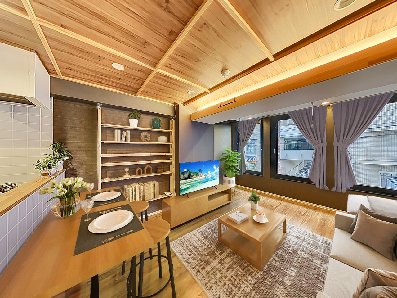 木の温もりとモダンなデザインが融合したリノベーションデザイン。